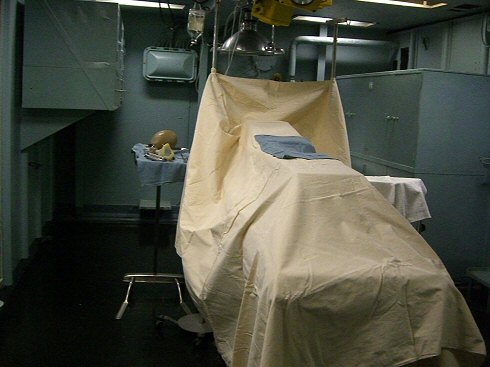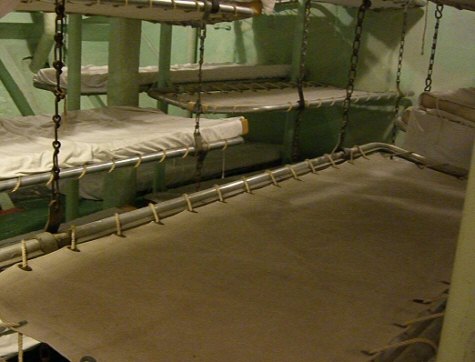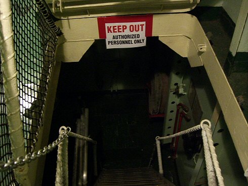 Our second encounter occurred in the berthing cot area. This was perhaps the most significant location in our investigation. The K2 meter repeatedly lit up brightly and stayed that way consistently. The assumed entity seemed to move from cot to cot, almost as if it wanted to get away from us. After resuming our tour, we returned to this location and continued to get significant K2 hits. We asked questions and tried to receive answers via the K2, but the energy fluctuation seemed to have no rhyme or reason.