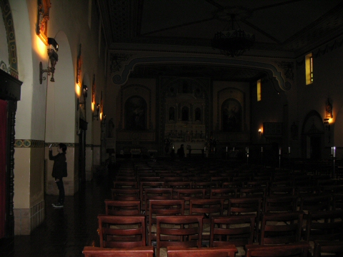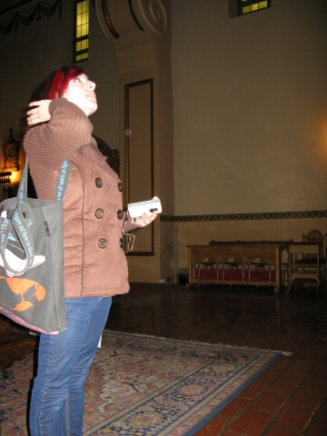 The Mission, thankfully, was fairly empty during our investigation. The staggering amount of ornate religious decorations, statues, paintings, and sculptures left us in a state of awe. It's easy to see why the dimly-lit Mission is so highly revered as a place of sanctuary and worship. We noted no unusual K2 hits within the building itself, however we got a few unexplainable spikes outside on the lawn. The K2 fluctuations were interesting since they seemed to roam the area and we could "follow" them around the grounds. Also to note is that this location was the former Padres Dormitory, which is now just a park-like setting outside the Mission. No EVPs were captured during the duration of the investigation, unfortunately. This may a sign of residual activity.