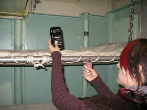Given the history of the ship and previous experiences there, we were amazed to not have a single experience! There were no K2 hits at all this time, and only a few areas had fluctations that the digital EMF dectector picked up. While doing the investigation, we did not knowingly encounter any paranormal activity, but as we later found out when reviewing the audio/video, there was more activity than we expected.