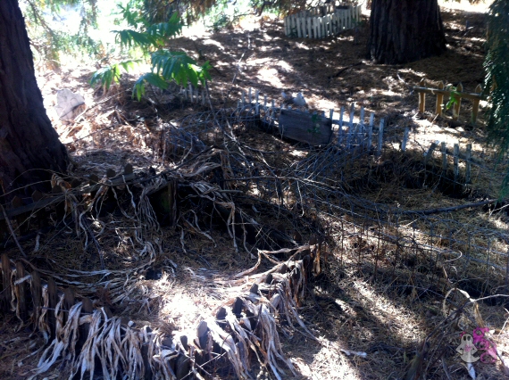 Driving along Sims Road in Santa Cruz off Highway 17, a couple of markers are the only indication that an historic pet cemetery is located just off the side of the road. It is located between two residences and is covered by trees and overgrowth. It's clear that the location hasn't been maintained in a long time and many graves are almost completely covered. Most of the readable gravestones appear to be from the 1950s and 1960s. While the area gives a creepy vibe due the neglected environment, one of the graves had been recently dug up, leaving an old decaying blanket and patches of dog fur behind. This reminded us of the Pet Cemetery movie, but rest assured, we didn't find any zombified pets running around. This abandoned place is peaceful and chilling. The owners of their pets loved them dearly, but have long stopped visiting their graves.